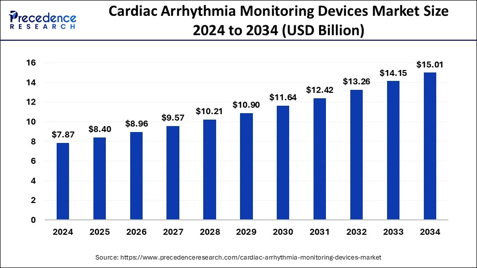 Ottawa, Nov. 21, 2025 (GLOBE NEWSWIRE) -- The global cardiac arrhythmia monitoring devices market size is expected to be worth over USD 15.01 billion by 2034, increasing from USD 8.96 billion in 2026, growing at a strong CAGR of 6.67% between 2025 and 2034. The cardiac arrhythmia monitoring devices market is driven by the growing incidence of cardiovascular disease.
