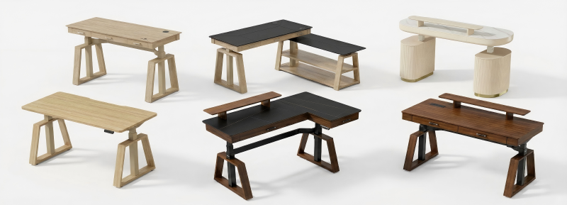 The ARK series is defined by a commitment to sleek minimalism and integrated technology. For professionals who believe "less is more," models like the Ark Pro feature smooth-gliding drawers integrated directly into a streamlined frame to maintain a clean desktop. For those requiring a charging hub, the ARK EL features distinctive trapezoidal legs and built-in USB ports, Type-C connections, and wireless charging pads to keep devices powered without cable clutter.